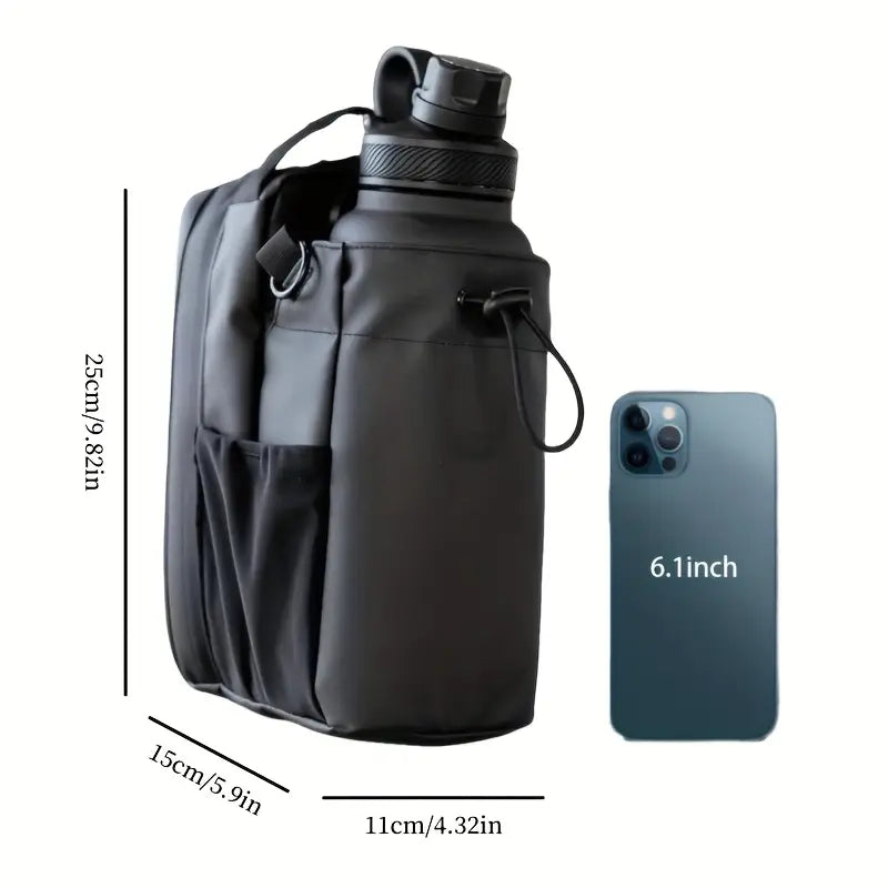 Magnetisk Vattenflaskväska för Gym med Justerbart Band - Stor Kapacitet, Hållbart Tyg, Svart eller ljusrosa, Flerfacksdesign för Fitness & Utomhusbruk