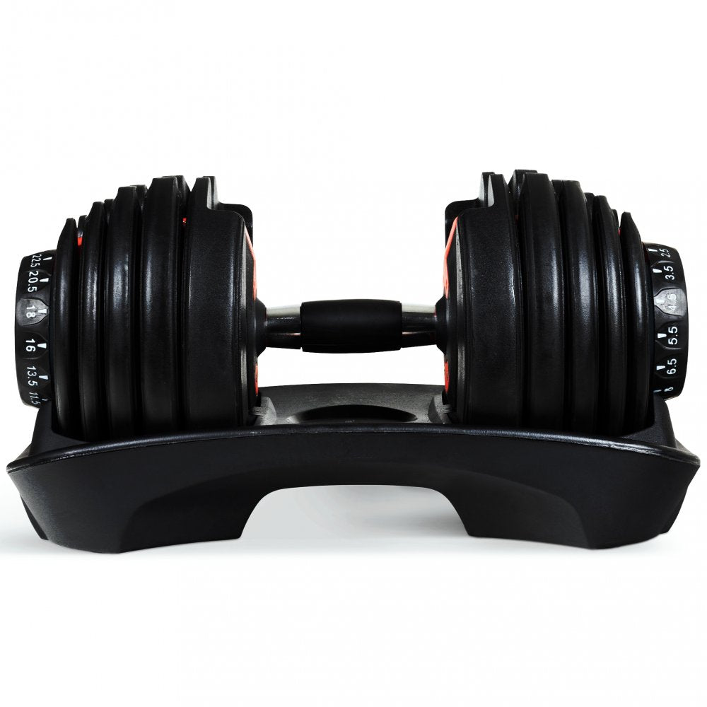 Justerbar hantel från Trekkrunner av högsta kvalitet. Med denna hantel kan du enkelt justera vikten mellan 2,5 till 24 kg i 15 olika nivåer. Denna hantel ersätter därför 15 separata hantlar, vilket sparar både pengar och utrymme. En justerbar hantel öppnar upp möjligheten för en mångsidig träningsrutin då du kan anpassa vikten beroende på övning. Hanteln är tillverkad av stål och starkt nylon.