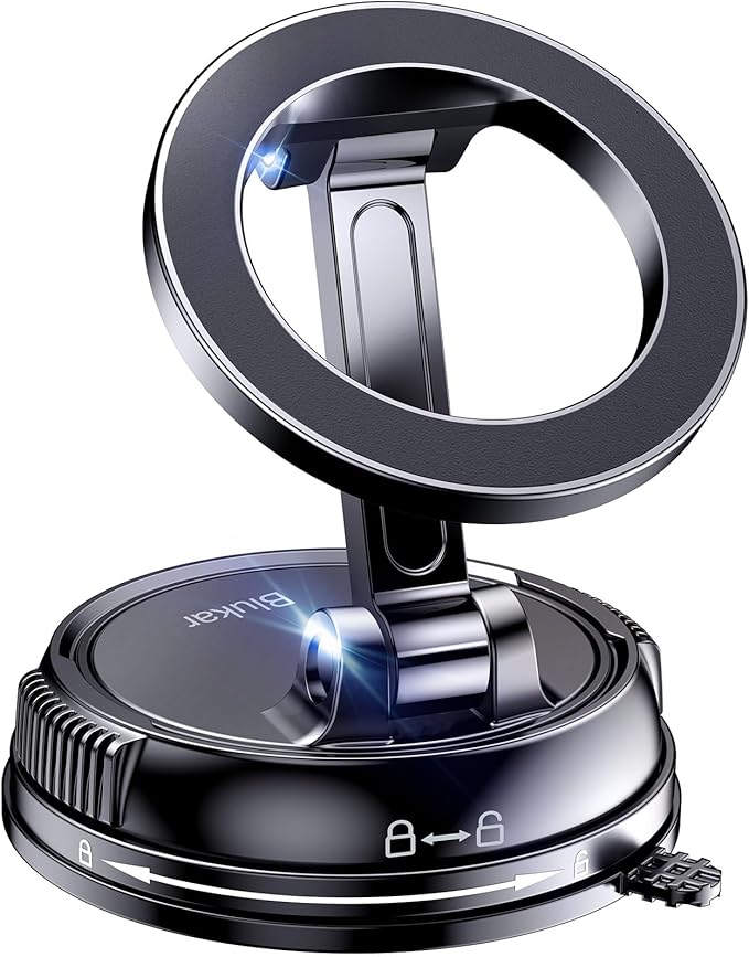 Kraftfull sugkopp: Blukar bilmobiltelefonhållare för MagSafe utrustad med en uppgraderad sugkopp som har både självhäftande och sugkoppsfästen för att säkerställa att hållaren är ordentligt fäst på instrumentbrädan för extra säkerhet.